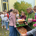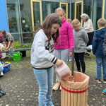 Für das tolle Pausenfrühstück haben wir sogar selbstgemachten Apfelsaft hergestellt.